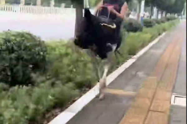 На видео попал китаец на страусе, который разгоняется до 100 км/ч