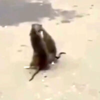 Очевидцы запечатлели инцидент на видео. На кадрах видно, как две крысы дерутся на проезжей части рядом с припаркованными автомобилями. На записи также заметно, что в момент боя животные подпрыгивают.