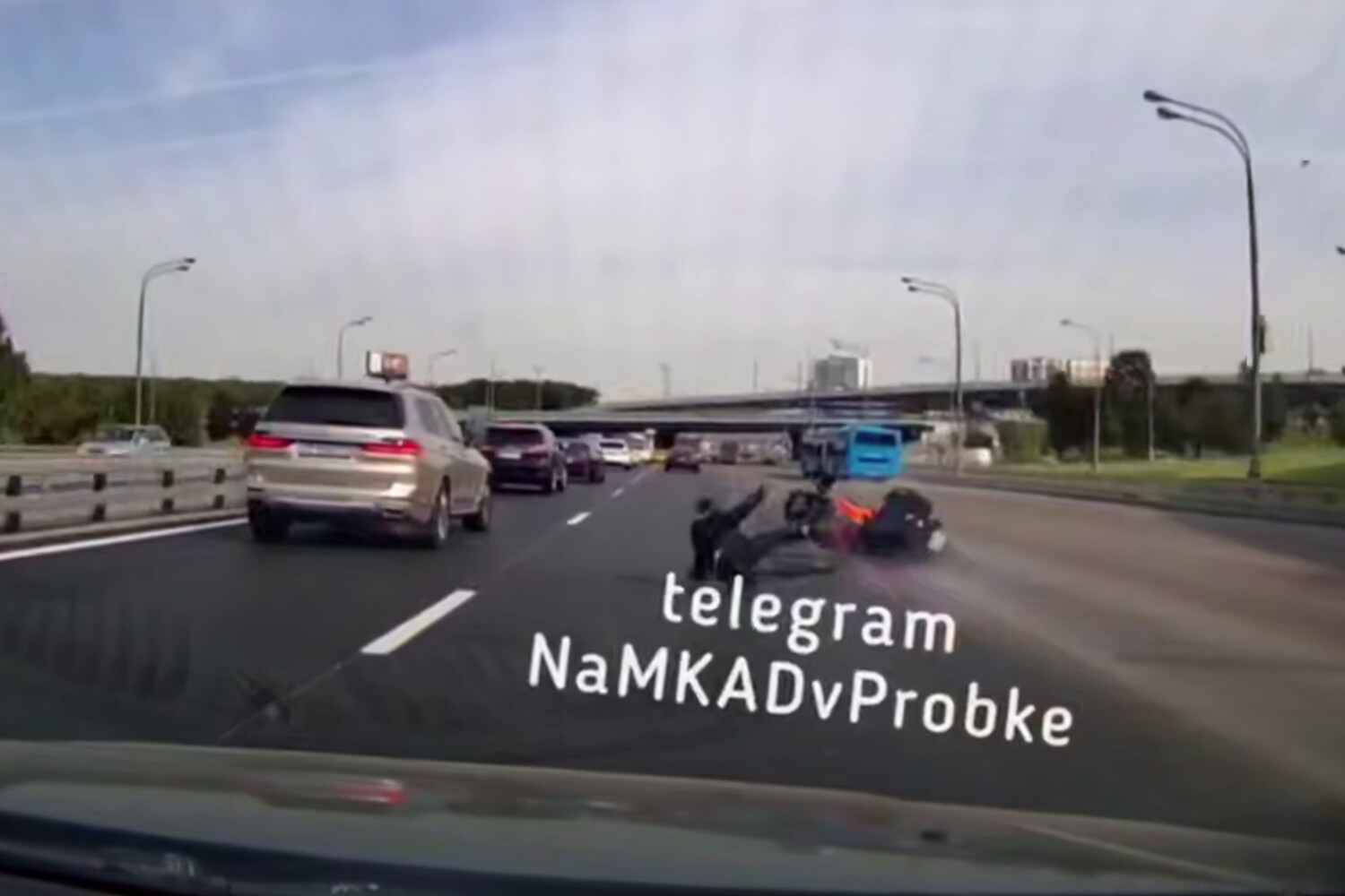 В Москве на видео попало, как женщина кричала в момент ДТП с мотоциклистом