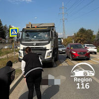 Очевидцы запечатлели последствия инцидента. На кадрах видно, что пострадавшая женщина лежит на проезжей части перед большегрузом. О состоянии ребенка ничего не сообщается.