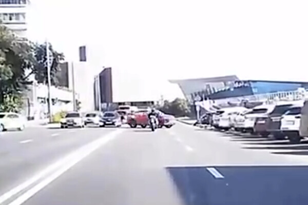 В Красноярске на видео сняли кульбит байкера в момент ДТП
