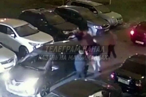 Уличная камера запечатлела инцидент. На кадрах видно, как несколько человек дерутся на парковке, после чего конфликтующие садятся в автомобили.