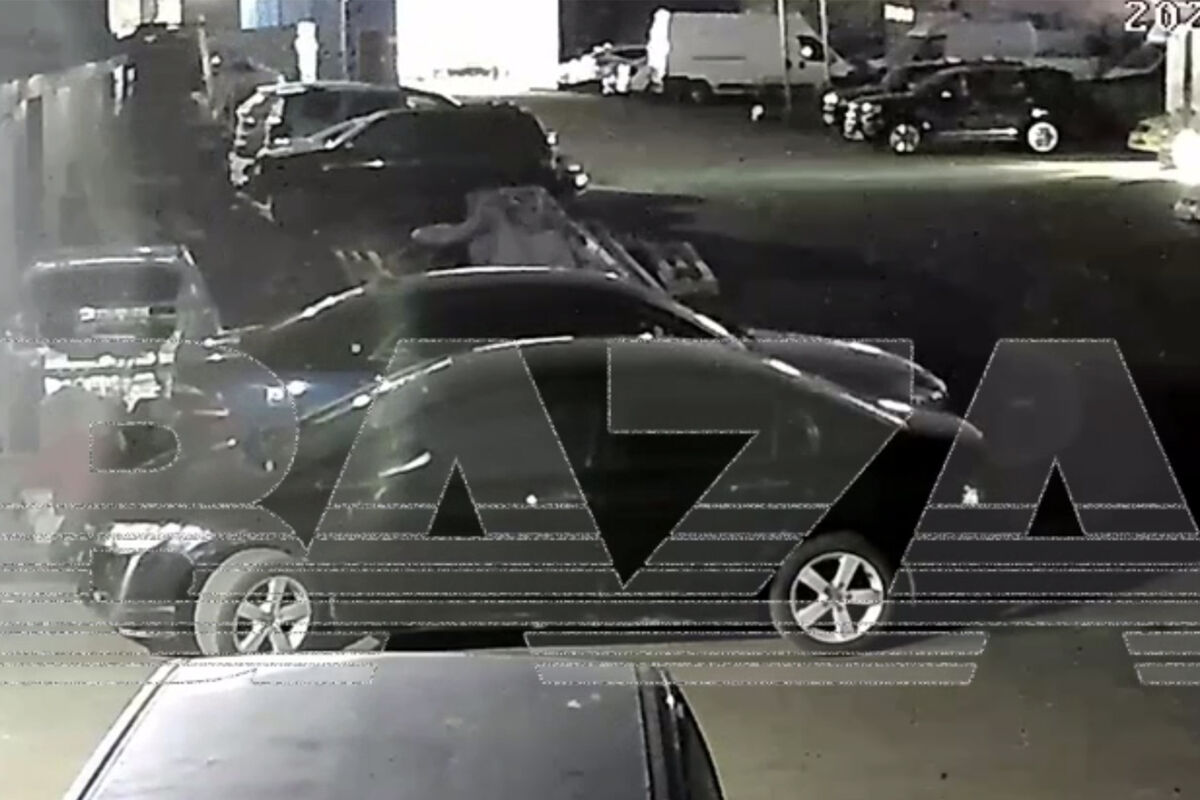 Уличная камера запечатлела инцидент. На кадрах видно, как дроны взрываются на парковке, в момент прилета у машин срабатывает сигнализация. На кадрах также заметно, что после взрывов на парковку выходят три человека.