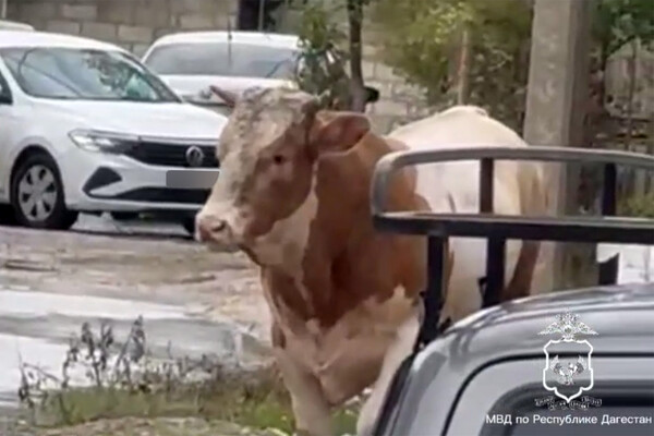 Полицейские выпустили 12 пуль в быка, который напал на машины и прохожих в Дагестане