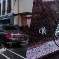 Машина была сфотографирована на дорогах Москвы. Помимо нестандартного цвета, этот автомобиль декорирован персональной эмблемой артиста.
