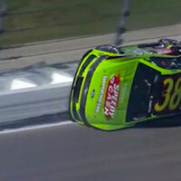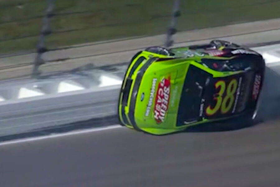 В США во время автогонок серии NASCAR автомобиль пилота Зейна Смита перевернулся набок на скорости 320 км/ч и ехал, упираясь колесами в стену трека. Об этом сообщает Yahoo Sports.