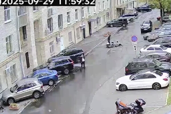 На кадрах видно, что пожилая женщина двигалась по проезжей части в узком проезде возле жилого дома. Курьер на электровелосипеде врезался в нее со спины, когда женщина сместилась левее. Пострадавшая упала на асфальт. Курьер также упал, а затем встал на ноги и поднял свой велосипед.
