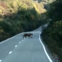 Автомобилисты запечатлели инцидент на видео. На кадрах видно, как животное перебегает проезжую часть и скрывается в лесу. По словам автора видео, хищник большой.