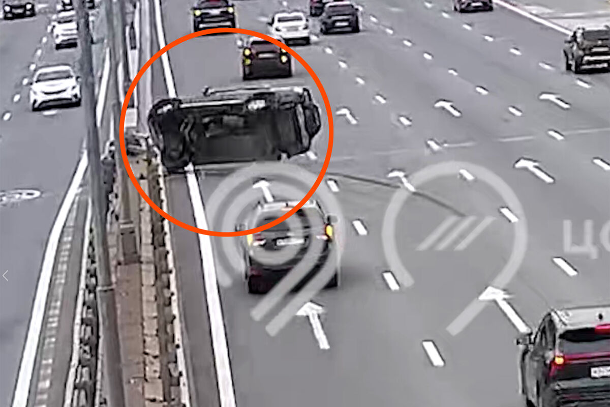 В Москве на МКАД автомобиль перевернулся в момент движения. Об этом сообщает Telegram-канал СпецДорПроект.