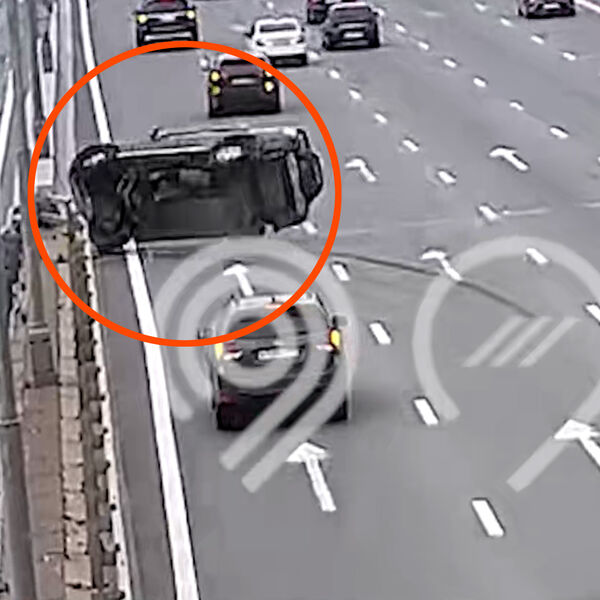 Уличная камера запечатлела инцидент. На кадрах видно, как черный автомобиль с водителем сначала падает на бок, затем – переворачивается и начинает вращаться на проезжей части. Кроме того, на записи заметно, что в момент ДТП автомобильные детали разлетаются по дороге.