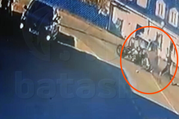 Уличная камера запечатлела инцидент. На кадрах видно, как байкер на скорости врезается в иномарку, перелетает через транспорт и падает на проезжую часть.