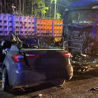 «32-летняя женщина за рулем легкового авто выехала на встречную полосу и врезалась в грузовик. <...> один человек госпитализирован», — говорится в сообщении.