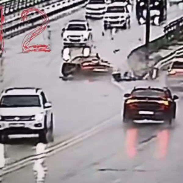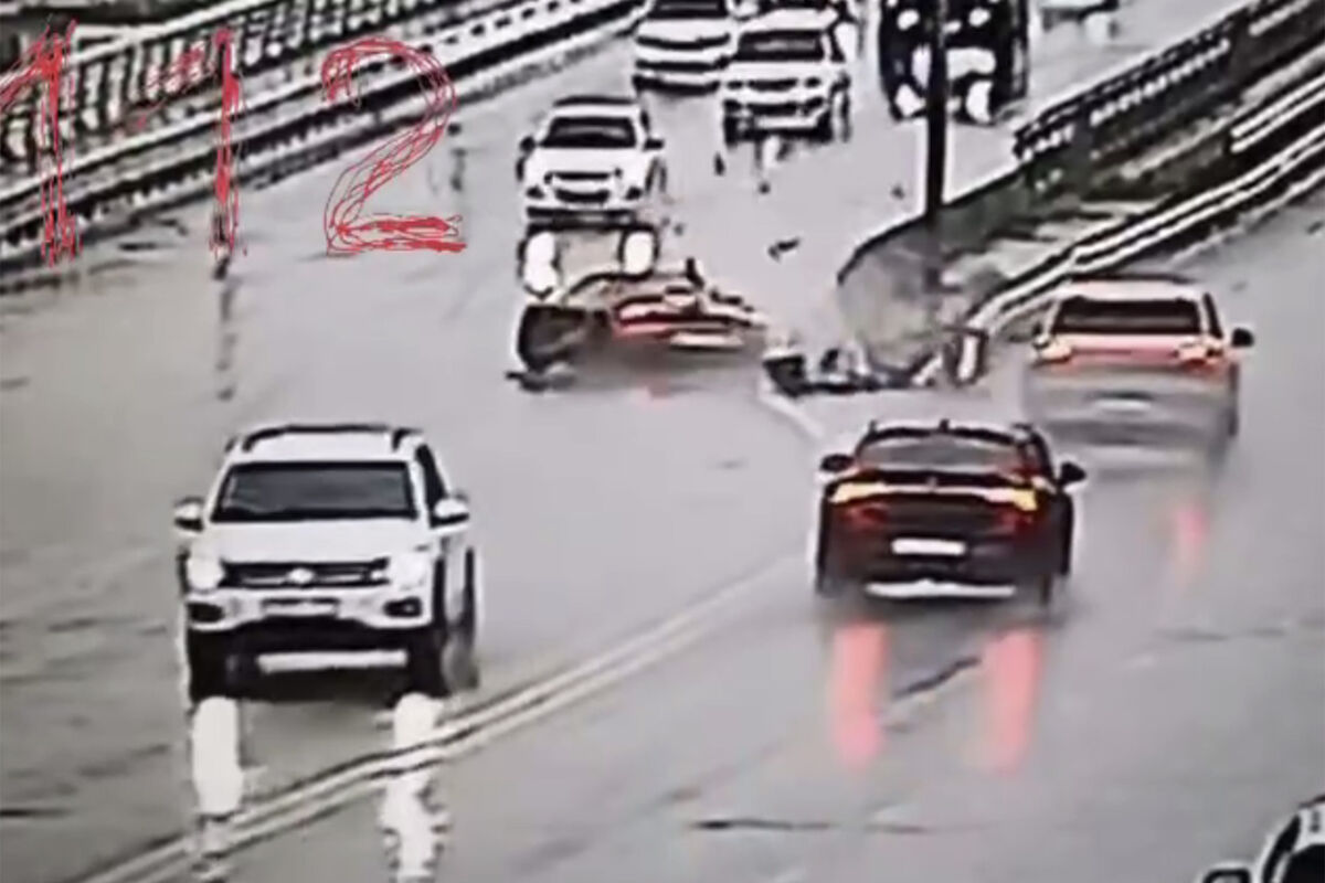 В сети появился момент аварии с ростовским блогером-каскадером Евгением Чеботаревым. Кадры опубликовал Telegram-канал 112.