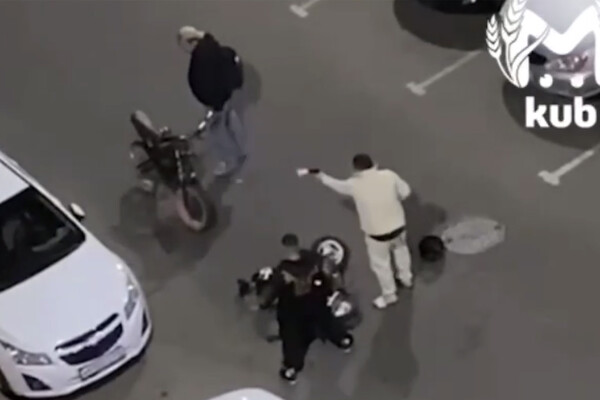 На опубликованных в сети кадрах видно, что мужчины начинают драку на проезжей части, и в этот момент один из конфликтующих стреляет в своего оппонента.