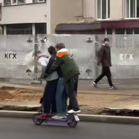 Местные жители запечатлели инцидент на видео. На кадрах заметно, как школьники втроем едут на одном электросамокате по проезжей части, при этом прохожие оглядываются на нарушителей.