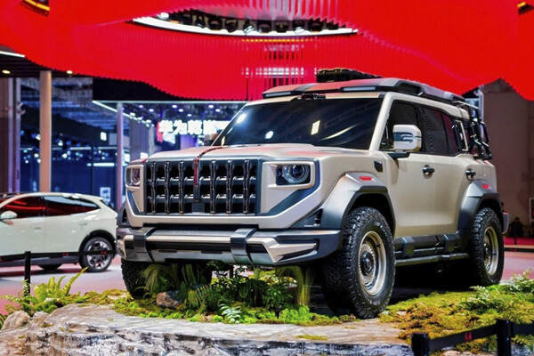 Во внешнем дизайне автомобиля обыгрываются элементы «пазово-шипового соединения», традиционного для древнекитайской деревянной архитектуры. Радиаторная решетка строгой формы сочетается с круглыми фарами, на крыше установлен лидар (лазерный радар, используется для систем автономного вождения). Среди внедорожной экипировки — багажник на крыше с боковой лестницей.
