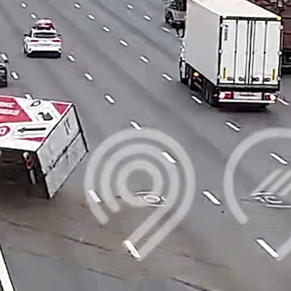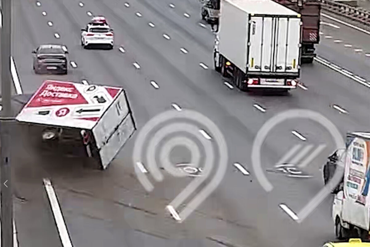 Уличная камера запечатлела инцидент. На кадрах видно, как после столкновения один автомобиль врезается в грузовик, который в момент ДТП въезжает в ограждение и переворачивается. На записи также заметно, что в момент аварии автомобильные детали разлетаются по проезжей части.