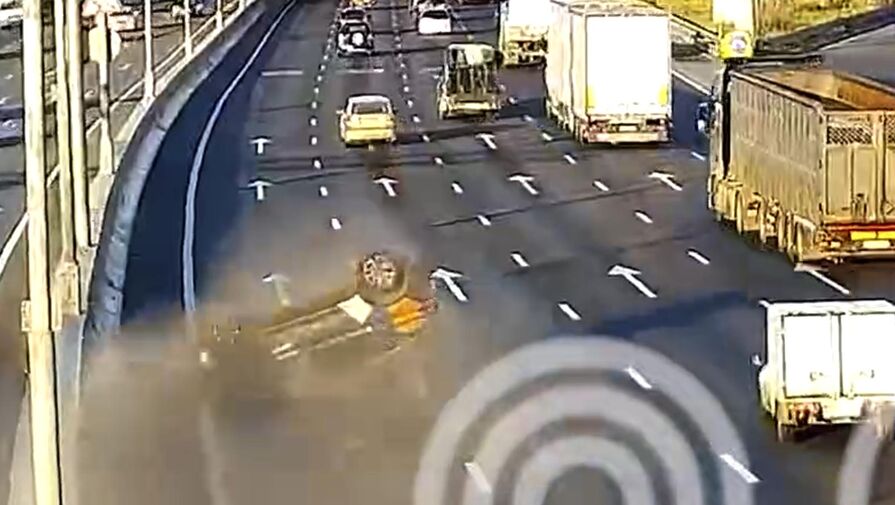 На МКАД каршеринг перевернулся, врезался в грузовик и попал на видео