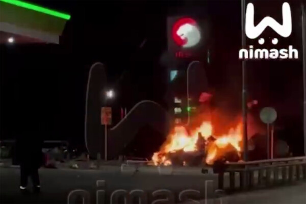 На опубликованных в сети кадрах видно, как на заправочной станции горит машина.