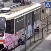 В Улан-Удэ пассажир на остановке упал под трамвай. Видеозапись произошедшего опубликовал Telegram-канал «Инцидент Россия».