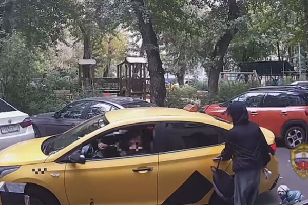 Уличная камера запечатлела инцидент. На кадрах видно, как девочка кладет серый рюкзак в автомобиль такси.