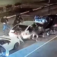 Уличная камера запечатлела инцидент. На кадрах видно, как несколько человек вытаскивают водителя из автомобиля, избивают и уезжают. На записи также заметно, что в момент нападения нарушили разбивают транспорт.