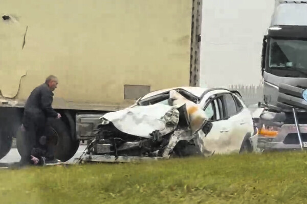Очевидцы запечатлели последствия ДТП. На кадрах видно, что на проезжей части стоят большегрузы, которые получили повреждения. На записи также заметно, что на месте массового столкновения работают медики, спасатели и правоохранители.