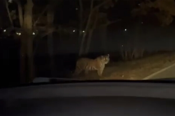 В Приморье на видео сняли, как тигр вышел к людям на проезжую часть