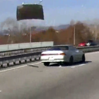 Видеорегистратор автомобиля, водитель которого стал очевидцем произошедшего, запечатлел инцидент. На кадрах видно, как капот серой машины отрывается, подлетает в воздух и несколько раз переворачивается.
