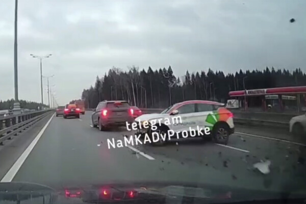 В Подмосковье на видео попало, как автомобили с людьми разлетелись от удара