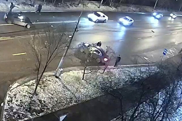 На видео попало, как автомобили с людьми разлетелись по проезжей части