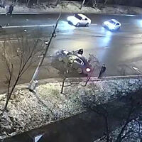 Уличная камера запечатлела инцидент. На кадрах видно, как легковой транспорт на большой скорости врезается в машину на повороте, от удара автомобили разлетаются и начинают вращаться. Кроме того, в момент столкновения отлетают детали. В конце записи заметно, что к поврежденным машинам подбегают очевидцы.
