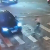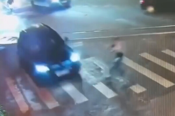 Уличная камера запечатлела инцидент. На кадрах видно, как пешеход разгоняется и начинает перебегать проезжую часть, в этот момент на переход выезжает черная машина, в которую врезается человек. От удара мужчина отлетает в сторону и падает на дорогу