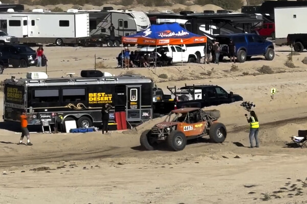 На внедорожных соревнованиях Laughlin Desert Classic в США пилот одного из автомобилей был вынужден ехать 12 км до финиша по пустыне задним ходом из-за поломки коробки передач. Об этом пишет The Drive.