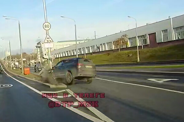 В Москве на видео сняли, как автомобиль с человеком влетел в столб