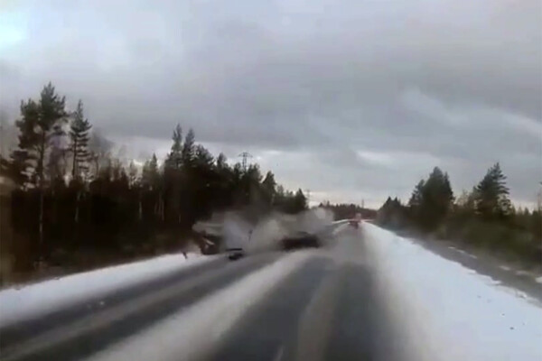 Видеорегистратор автомобиля, водитель которого стал очевидцем произошедшего, запечатлел инцидент. На кадрах видно, как черный автомобиль боком выезжает на встречную полосу движения и врезается в машину, от удара машины отбрасывает в разные стороны, а автомобильные детали разлетаются по проезжей части.