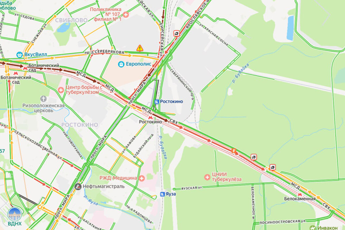 До этого в Москве на СВХ автомобильная авария затруднила движение транспорта. На месте работали оперативные службы города. В Дептрансе водителям посоветовали выбирать пути объезда проблемного участка по ТТК или Русаковской набережной.