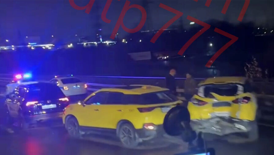 На МКАД произошло массовое ДТП, в котором участвовали два автомобиля такси. Видеозапись последствий аварии опубликовал Telegram-канал «ДТП и ЧП Москва и МО».