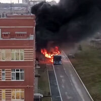 На кадрах, размещенных в сети, видно, что на проезжей части горит пассажирский транспорт, при этом пламя охватило автобус не полностью. На записи также заметно, как десятки школьников уходят дальше от места возгорания. По информации канала, в результате произошедшего никто не пострадал.