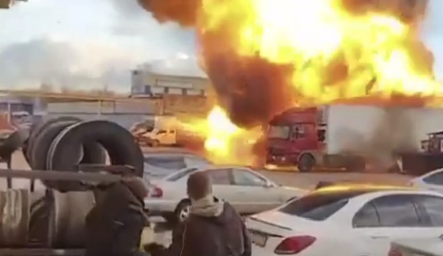 В подмосковном городе Видное взорвалась фура. Видео опубликовал Telegram-канал «Что там, Москва?»
