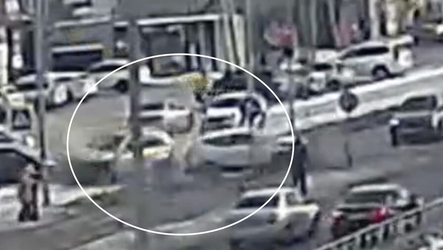 На кадрах видно, что автомобиль Nissan Qashqai пересекал перекресток, когда в него врезался ехавший в перпендикулярном направлении Suzuki Grand Vitara. От удара Nissan развернуло вокруг своей оси, а Suzuki вылетел с проезжей части в пешеходную зону и едва не сбил двух людей, которые стояли перед пешеходным переходом.