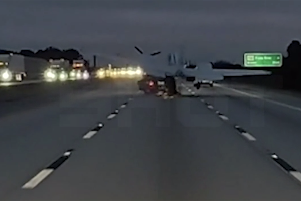 В США на видео попало, как самолет упал на трассу и протаранил авто с людьми