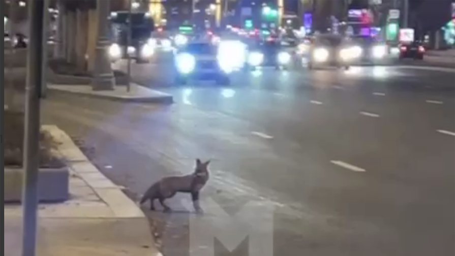 Очевидцы запечатлели инцидент на видео. На кадрах видно, как животное бежит по оживленной дороге, после чего выходит на тротуар и скрывается за зданием.