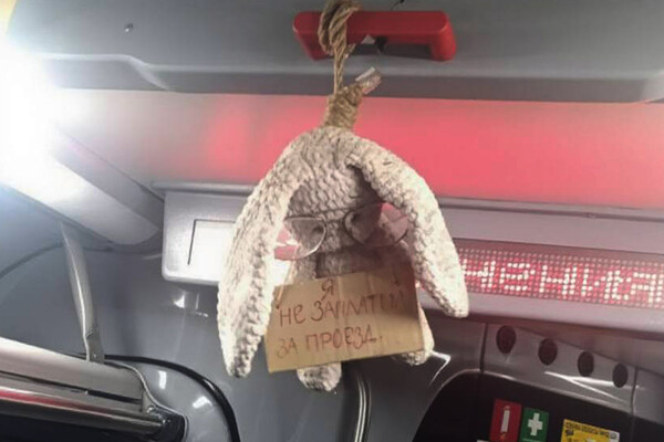 В Балашихе в салоне автобуса появилось жесткое предупреждение гражданам за безбилетную поездку. Там повесили плюшевого зайца, сообщает Telegram-канал 112.