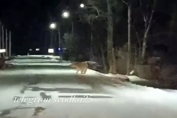 В Приморье на видео сняли, как тигр бегал по проезжей части на глазах у людей