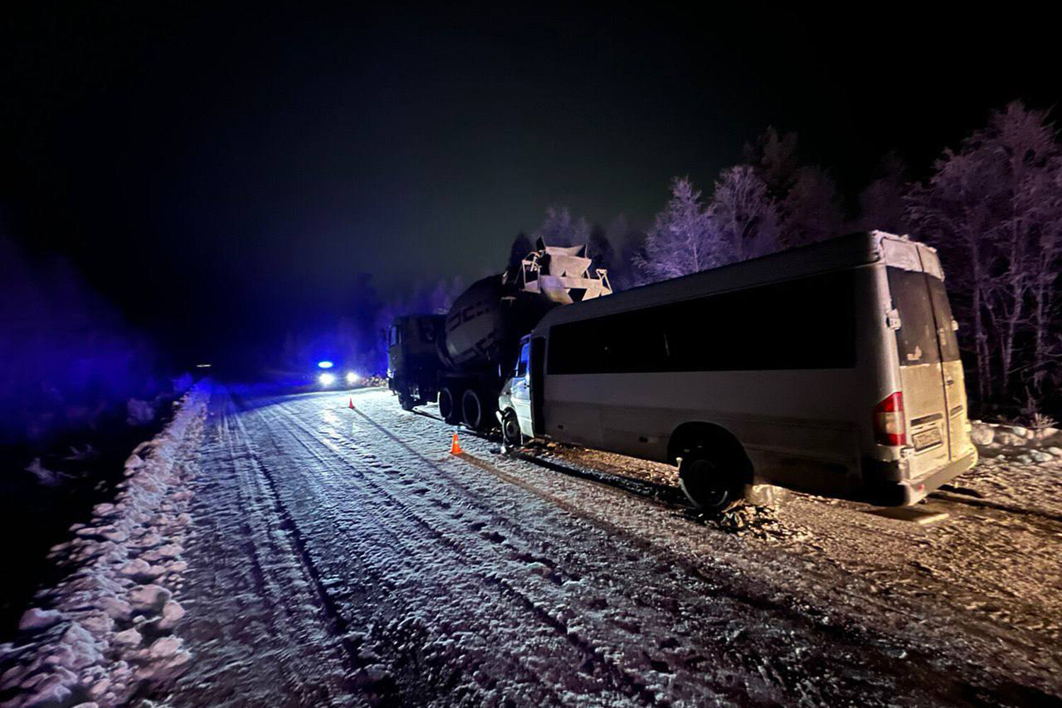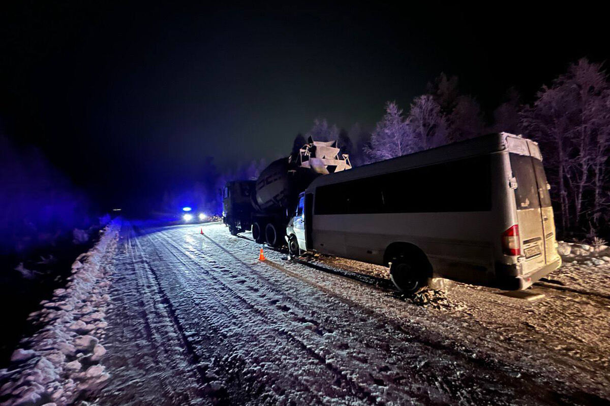 В Иркутской области 11 человек пострадали в ДТП с микроавтобусом и автобетоносмесителем