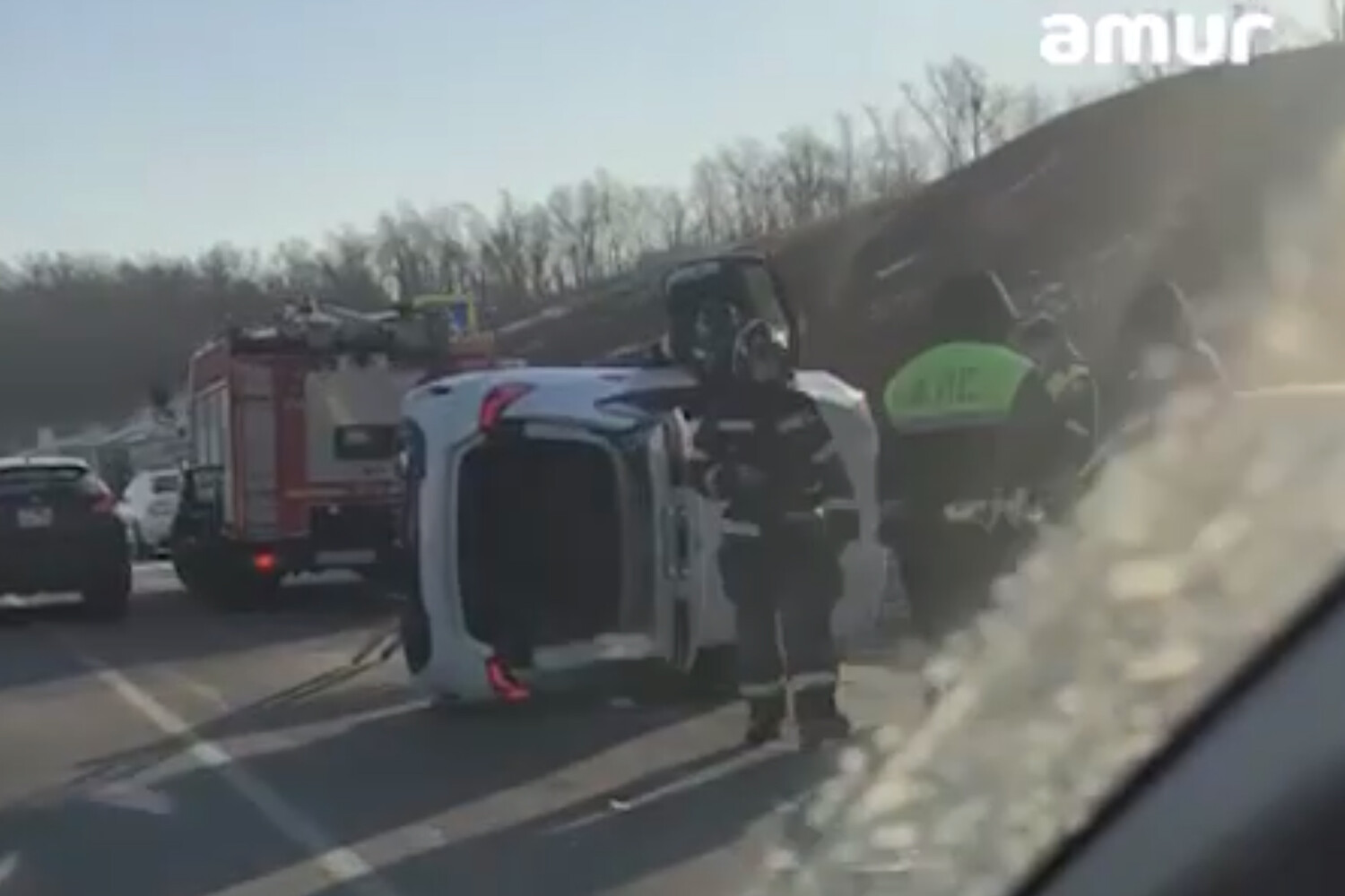 Очевидцы запечатлели последствия ДТП. На кадрах видно, что на проезжей части лежит автомобиль BMW, который в момент аварии отлетел и приземлился на бок. На записи также заметно, что иномарка получила повреждения. На место прибыли сотрудники правоохранительных органов, которые устанавливают все обстоятельства произошедшего.