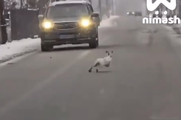 Заяц, игнорирующий ПДД, пронесся навстречу автомобилям и попал на видео