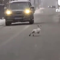 Очевидцы запечатлели инцидент. На кадрах видно, как заяц быстро бежит по проезжей части навстречу автомобилю, но сворачивает на обочину, затем еще несколько раз выбегает на дорогу. На кадрах также можно заметить, что животное перебегают проезжую часть в месте, необорудованном для пешеходов.