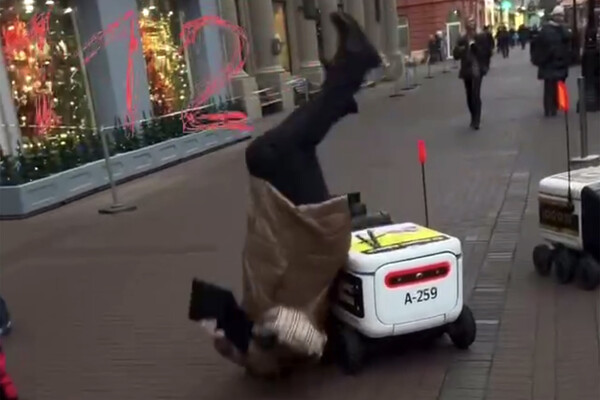 В центре Москвы женщина споткнулась о робота и упала, сообщает Telegram-канал 112.